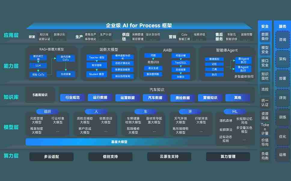 大发国际问学智车解决方案是一套基于AI技术的汽车行业智能化系统,,覆盖从底层算力到顶层AI应用的全栈方案。。方案由算力层、、、、模型层和应用层组成:算力层,,,方案支持多种一体机配置,,,具备云端灵活部署、、、多云适配以及动态优化计算资源的能力;模型层,,,大发国际问学平台版提供了企业级AI应用一站式构建与管理平台,,,,支持基于后训练强化技术的汽车企业专属模型的训练、、、、评测和运营;应用层,,,大发国际问学DeepSeek版提供包括超级员工、、、、智能招采、、智能营销、、、、智能客服、、、、AI for BI等一系列解决方案,,,可助力汽车行业实现数字化转型,,,,让管理更智能、、、、响应更敏捷。。。